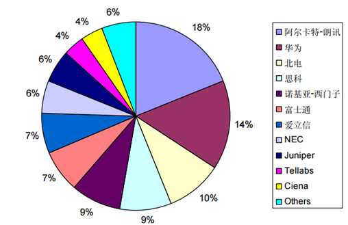 全球光传输设备厂商的市场份额情况